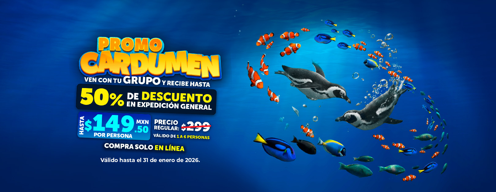El inicio del año es para crear recuerdos increíbles, no para quedarse en casa. Con la Promoción Cardumen, reúne a tu familia o amigos y disfruten una acuarioaventura épica sin afectar tu presupuesto.