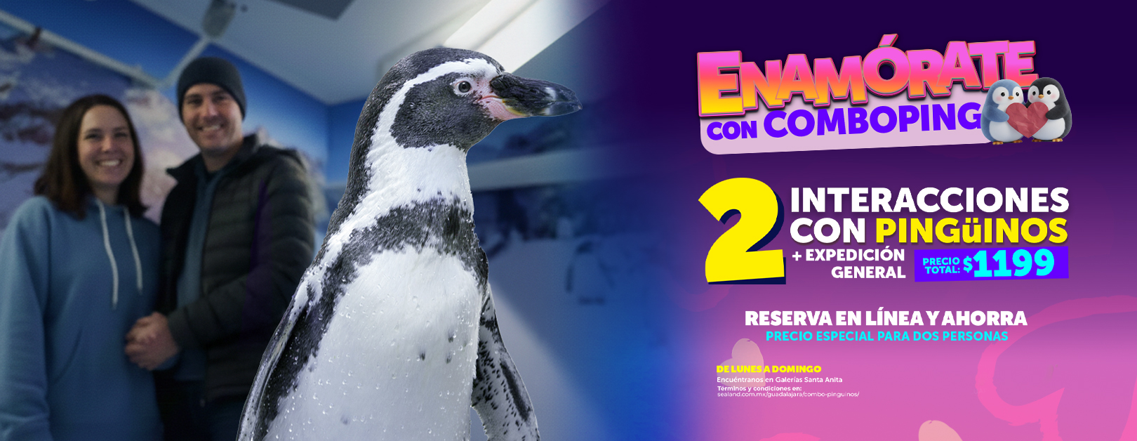 La Promoción es vigente de lunes a domingo para la interacción de pingüinos e incluye acceso general