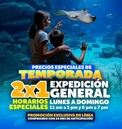 ¿Listo para unas vacaciones diferentes? Con nuestra Promoción Especial de Vacaciones, podrás asegurar tu visita con 2×1 en Expedición General, la forma ideal de explorar el acuario, descubrir especies increíbles y disfrutar experiencias únicas con tu familia o amigos.