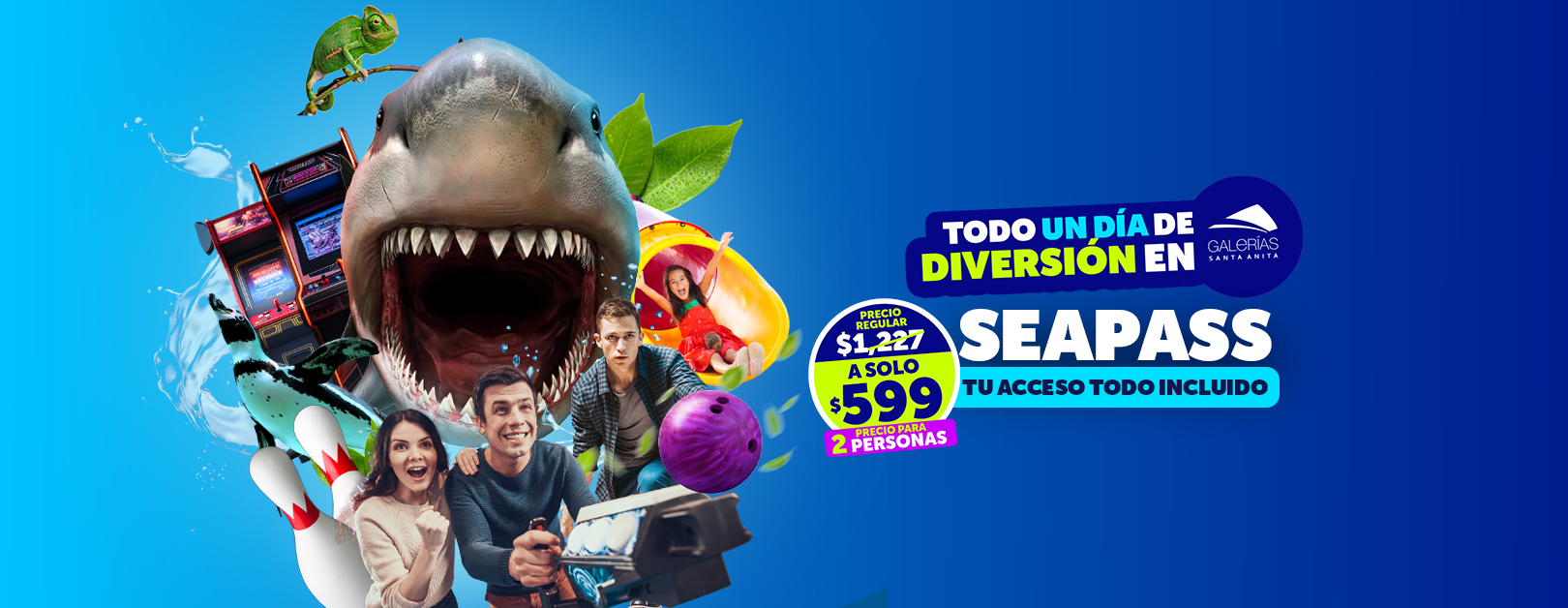 Las experiencias incluidas en el SEAPASS se llevarán a cabo únicamente en GALERÍAS SANTA ANITA. https://maps.app.goo.gl/GEPUkAkwA4eLBjUH9