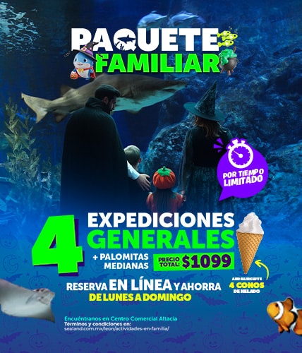 El mejor plan está en Sealand León. Con nuestro Paquete Familiar, tú y los tuyos podrán vivir una acuarioventura inolvidable entre tiburones, rayas, ajolotes, pingüinos y muchas especies más.