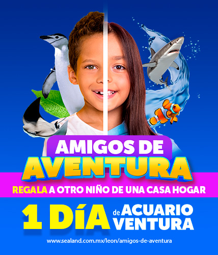 - “Amigos de Aventura” es una iniciativa de Sealand León que tiene como objetivo beneficiar a niñas y niños de fundaciones, asociaciones y casas hogar mediante el acceso a la experiencia del acuario.