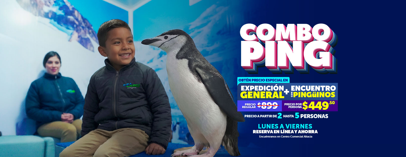 - El precio especial de $449.50 aplica por persona, en la compra mínima de 2 entradas de expedición general + pingüinos.