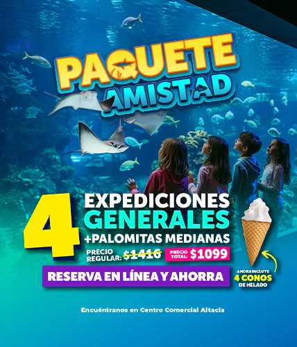 • 4 Expediciones Generales, para recorrer los 6 mundos de exhibición de especies marinas y terrestres.
