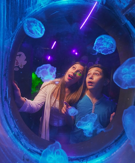 ¡Aventúrate en un recorrido fantástico! Aquí nuestros huéspedes se convierten en expedicionarios del mítico submarino “Sealand” y una vez “a bordo” recorren a su propio paso lugares inexplorados como el Triángulo de las Bermudas, Isla Tortuga, Amazonia, Desertika, Artíco y Antártida. Podrás ver más de 10 mil ejemplares de más de 300 especies, y realizar múltiples actividades como jugar con nieve de verdad, darle de comer a una raya marina, lanzarte de una rampa, una experiencia de rescate del tesoro en realidad virtual y mucho más.