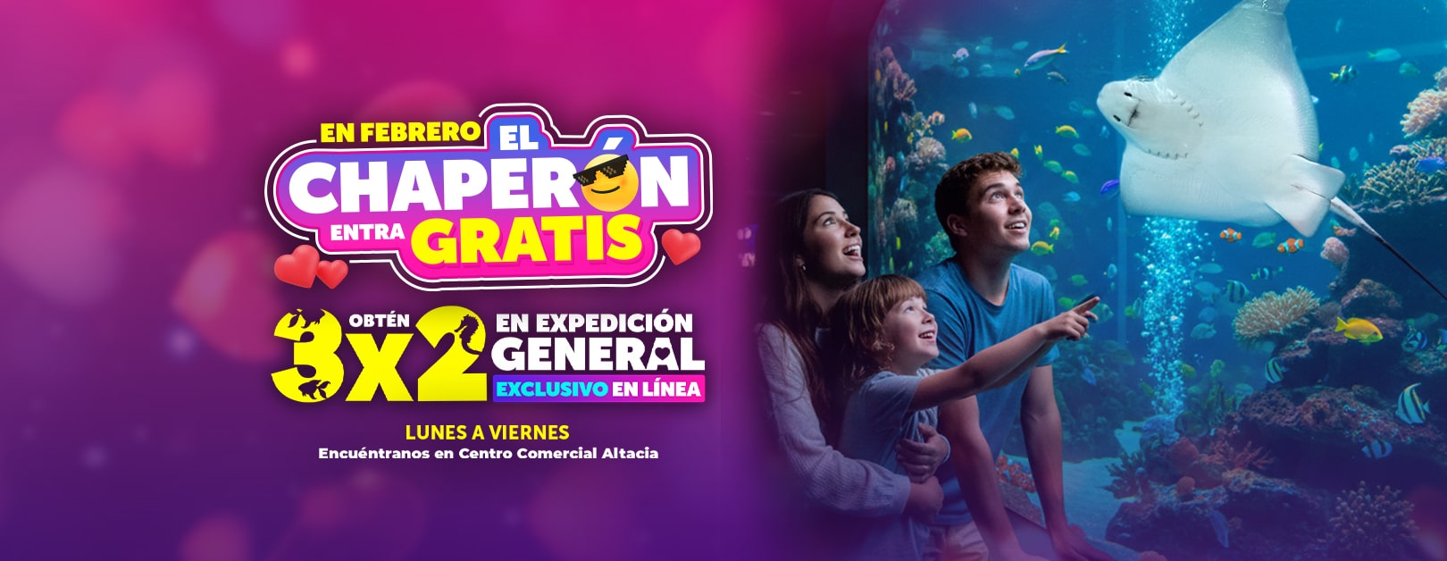 ¿Tienes una cita y traes chaperón? Este mes del amor y la amistad, tenemos la promo perfecta que hará que nadie se quede fuera de la acuarioventura, aprovecha nuestro 3×2 en Expedición General: trae a tus dos compañeros de aventuras, y uno de ellos ¡entra completamente gratis! Aprovecha esta oportunidad para explorar juntos nuestros mundos temáticos, descubrir fascinantes especies y disfrutar de una experiencia llena de diversión y emoción. No importa si vienes en pareja o con amigos: ¡Somos el lugar perfecto para crear recuerdos!