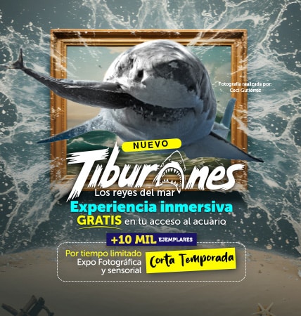 Podrás explorar una narrativa visual impactante con obras de seis fotógrafos de vida marina reconocidos a nivel nacional e internacional, acompañadas de videomapping inmersivo, museografía sensorial y una de las colecciones de tiburones más notables de México.