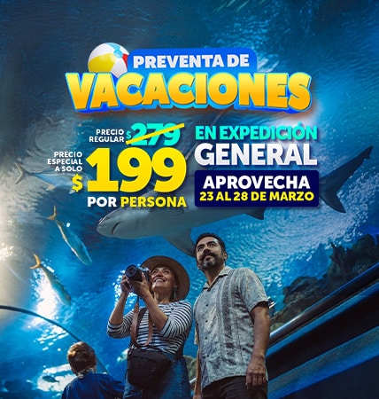 ¿Por qué esperar para vivir una gran acuarioventura estas vacaciones? En Sealand León queremos que más familias puedan disfrutar del mundo marino con una promoción especial en Expedición General por solo $199 por persona.