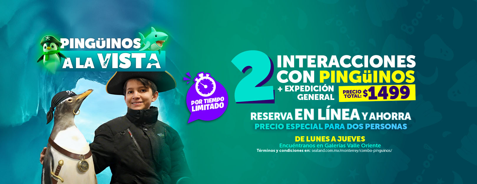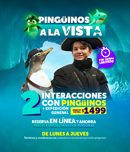Podrás observarlos, tomarte fotos con ellos, saludarlos y hasta dejar que te den un besito. Aprende más sobre su personalidad, sus plumas a prueba de agua y otros datos interesantes que te encantarán. No te pierdas esta increíble oportunidad de visitar Sealand Monterrey, aplicando este combo de Lunes a Jueves con tu persona favorita.